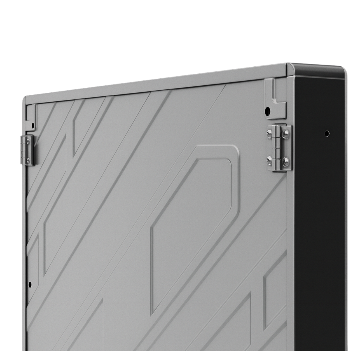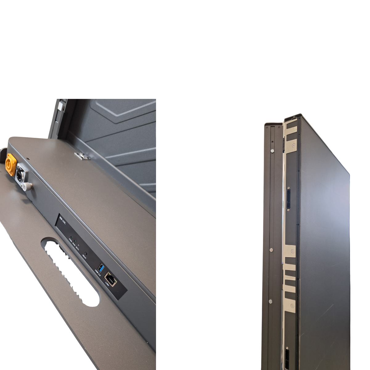 Il display è inoltre dotato di una cornice protettiva in alluminio pieghevole lungo tutto il perimetro, che garantisce la massima protezione. Per collegare ogni schermo all’altro ed espandere il poster LED in un grande schermo solido, è sufficiente estrarre i coprilaterali e fissare i due poster LED tra loro con una serratura a chiave.