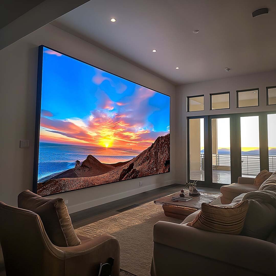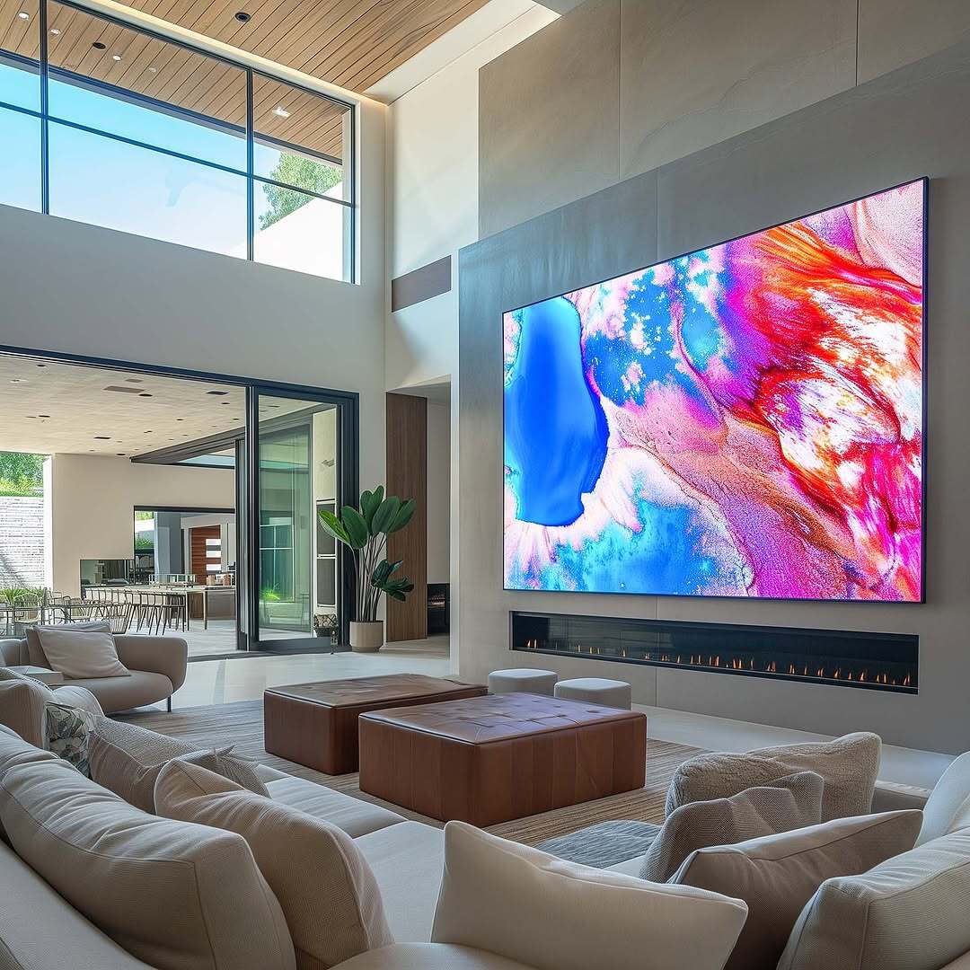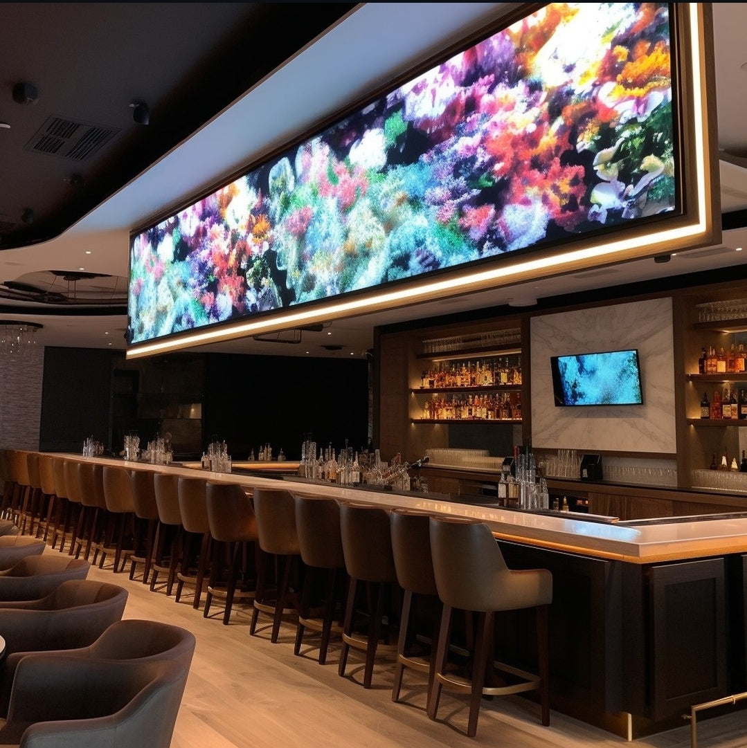 Stałe ściany multimedialne o niestandardowych rozmiarach do wnętrz to najlepszy wybór do zastąpienia wysokiej jakości telewizora. Teraz możesz zrobić ogromny telewizor z modułów LED w bardzo rozsądnej cenie i znacznie wyższej jakości obrazu niż oLED TV.