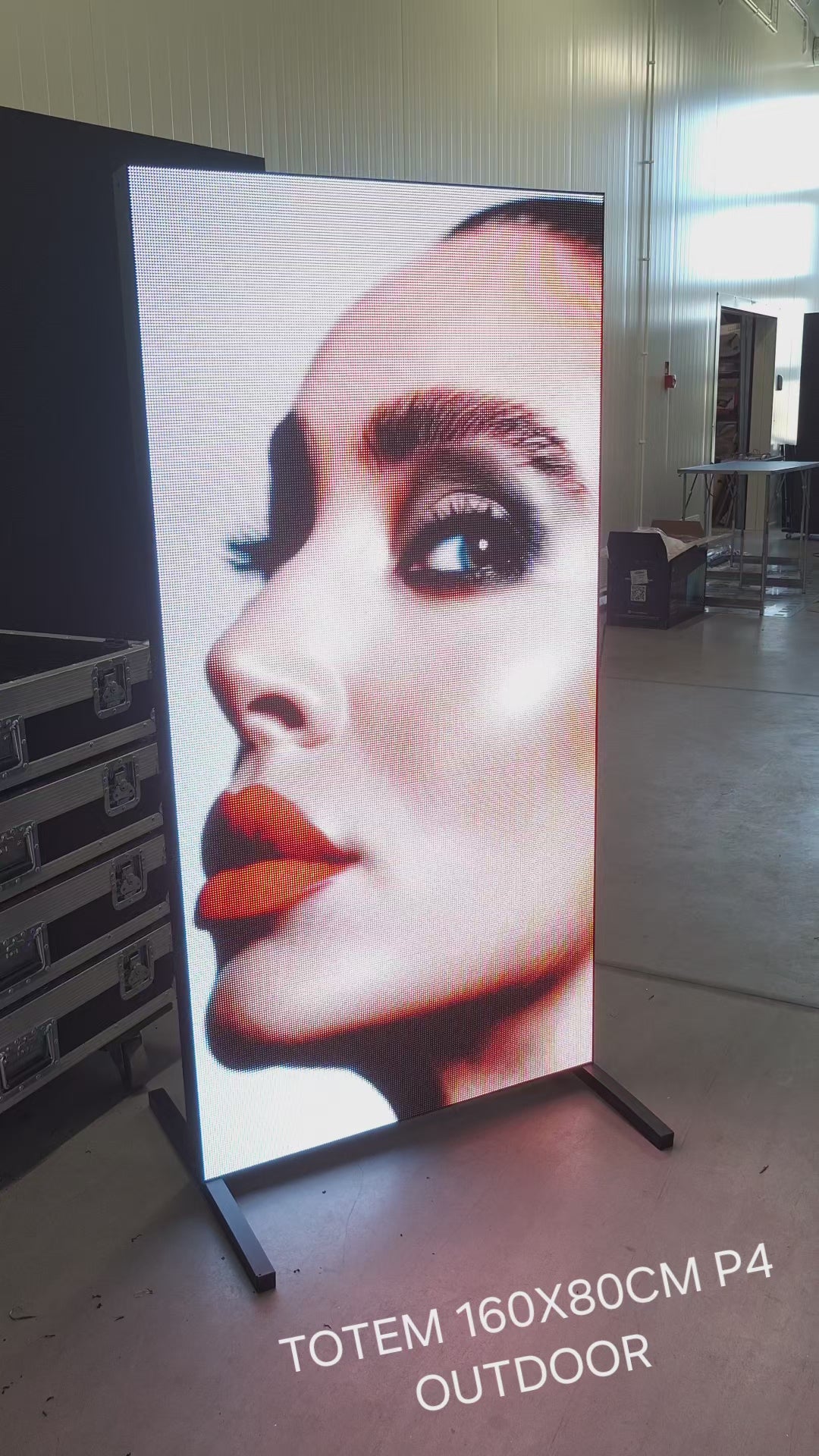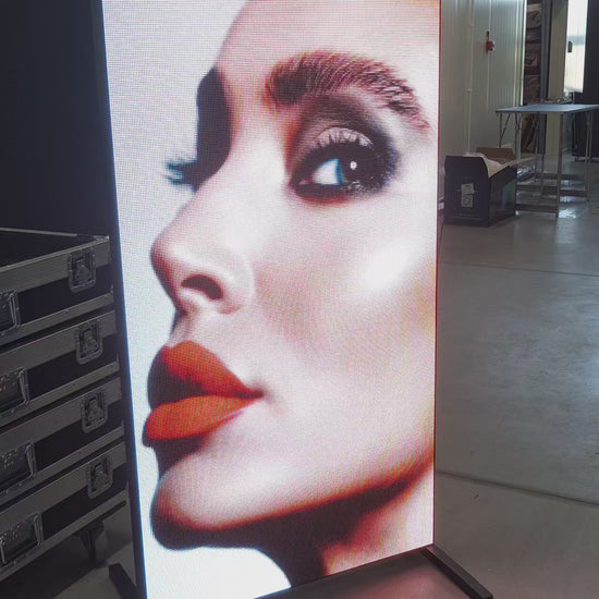 Opis izdelka: Profesionalni LED zaslon z visoko svetilnostjo (4500 nitov), odporen na vremenske vplive. Ponujamo dve konstrukcijski različici: mobilno na kolesih za enostaven transport ter stacionarno na nogah za eleganten videz in manjšo težo.